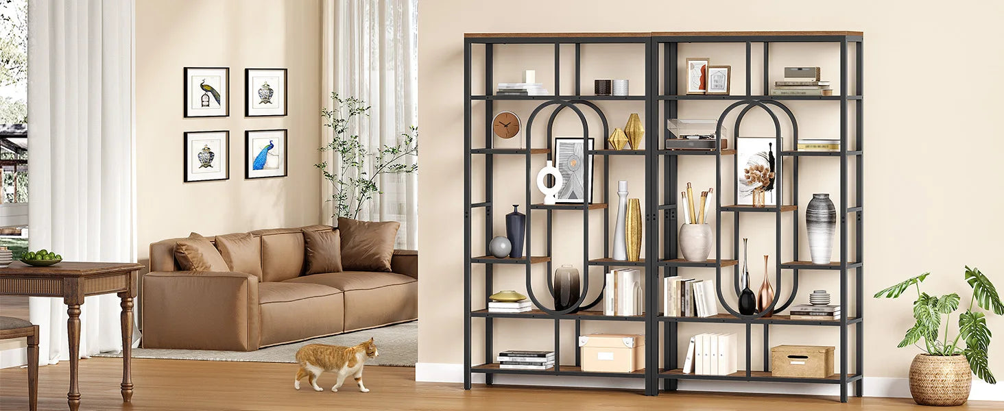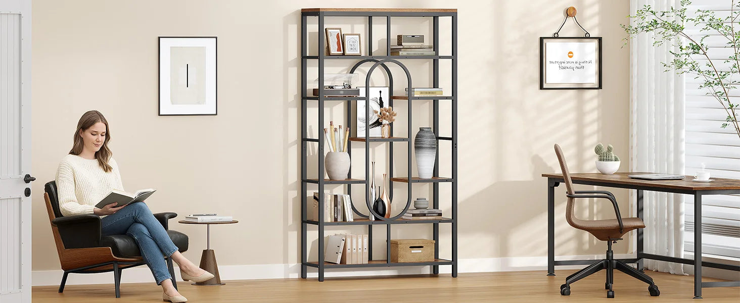 Industrial Bookcase 7 Tiers – Vintage Brown & Black