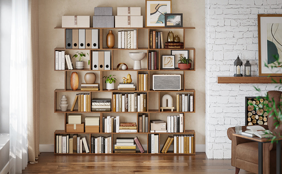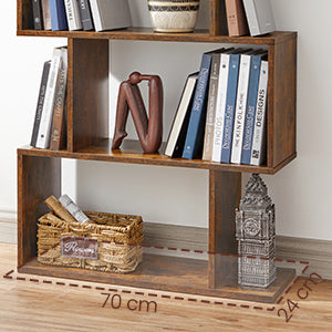 The unique, contemporary design makes this bookcase a real eye-catcher. Ideal for stylishly displaying books, decorations, plants, or accessories . The warm , vintage brown wood look combined with the industrial feel creates a cozy and modern atmosphere in your home.